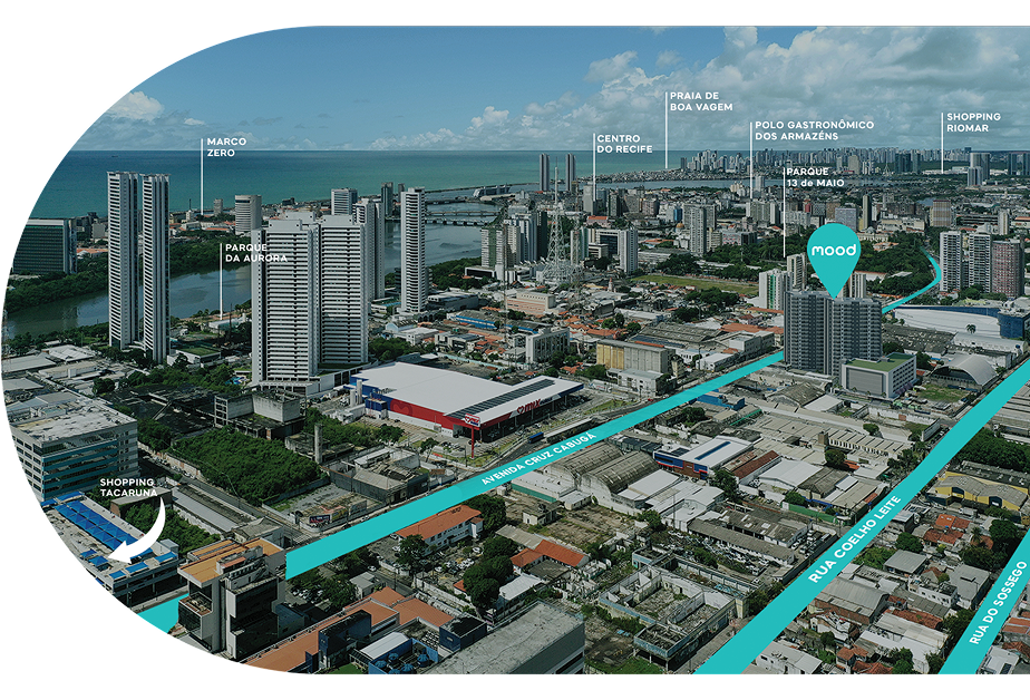 O Mood Aurora está localizado estrategicamente na Av. Cruz Cabugá, próximo aos pontos mais centrais da cidade. Os apartamentos de 2 quartos com varanda proporcionam o ambiente perfeito para sua família, além da área de lazer com itens para todas as idades.